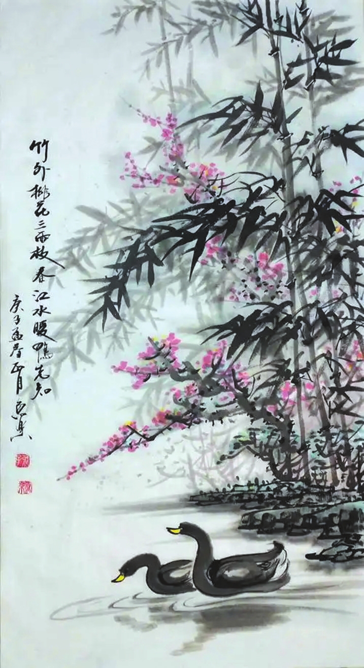 數(shù)字點(diǎn)染,精妙難言。古詩(shī)中常用數(shù)字實(shí)寫(xiě)事物,前呼后應(yīng)形成點(diǎn)染。蘇軾《惠崇春江晚景》中寫(xiě)“竹外桃花三兩枝,春江水暖鴨先知”,先以“三兩枝”具體描寫(xiě)桃花零星開(kāi)放的實(shí)景,渲染初春的環(huán)境氣氛,再以“春江水暖鴨先知”點(diǎn)明題旨。“三兩枝”不多不少恰到好處,點(diǎn)出初春的景物特征——少則春寒料峭,過(guò)于冷寂,多則春意盎然,稍嫌熱鬧,都無(wú)法與后文“春江水暖鴨先知”對(duì)季候變化的感悟相呼應(yīng)。葉紹翁的《游園不值》云“春色滿園關(guān)不住,一枝紅杏出墻來(lái)”,先點(diǎn)出“春色滿園”的主旨,再以“一枝紅杏”具體渲染春天壓抑不住的蓬勃生機(jī),以及作者游園不成忽見(jiàn)“春色”破墻溢出的驚喜。這個(gè)“一”是其余數(shù)字替代不了的,數(shù)字點(diǎn)染,準(zhǔn)確精當(dāng),妙不可言。