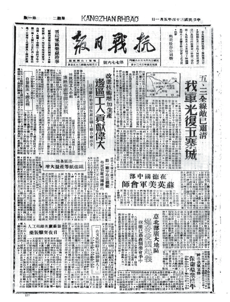抗戰(zhàn)時(shí)期,忻州既是晉察冀、晉綏兩大根據(jù)地的中心腹地,也是抗戰(zhàn)初期全面抗敵的主戰(zhàn)場。忻州以其地理咽喉、戰(zhàn)役要沖、根據(jù)地核心和人民戰(zhàn)爭典范的多重角色,成為抗日戰(zhàn)爭中抵御日軍侵略、堅(jiān)持?jǐn)澈蠖窢幍膽?zhàn)略支點(diǎn)之一。其歷史貢獻(xiàn)不僅體現(xiàn)在軍事上,更彰顯了中華民族不屈不撓的抗戰(zhàn)精神。隨著八路軍平型關(guān)大捷、雁門關(guān)伏擊戰(zhàn)、夜襲陽明堡飛機(jī)場等戰(zhàn)役勝利,1937年11月7日晉察冀軍區(qū)在五臺(tái)成立。12月11日,《抗敵報(bào)》誕生。1940年11月,《抗敵報(bào)》改名為《晉察冀日報(bào)》,鄧拓任報(bào)社主任?!犊箶硤?bào)》最初在五臺(tái)石嘴村石印,后改鉛印。1938年1月,晉察冀邊區(qū)行政委員會(huì)在河北阜平成立,兩月后,邊區(qū)行政委員會(huì)遷駐五臺(tái)射虎川臺(tái)麓寺,報(bào)社、印刷廠分駐?;垅帧⒏蝮∈欧鹚?。1940年9月18日,晉綏分局機(jī)關(guān)報(bào)《抗戰(zhàn)日報(bào)》,伴隨著隆隆炮火聲,在距離忻州不遠(yuǎn)的興縣艱難創(chuàng)刊。自此,那些戰(zhàn)地記者、通訊員甚或普通民眾,有名的,無名的,以個(gè)人名義,以集體名義,在極其艱苦的條件下,用滾燙筆尖秉筆直書,為我們珍存了那些發(fā)生在忻州大地上前仆后繼、可歌可泣的抗戰(zhàn)故事,也讓今天的人們一旦捧讀就會(huì)熱血沸騰。