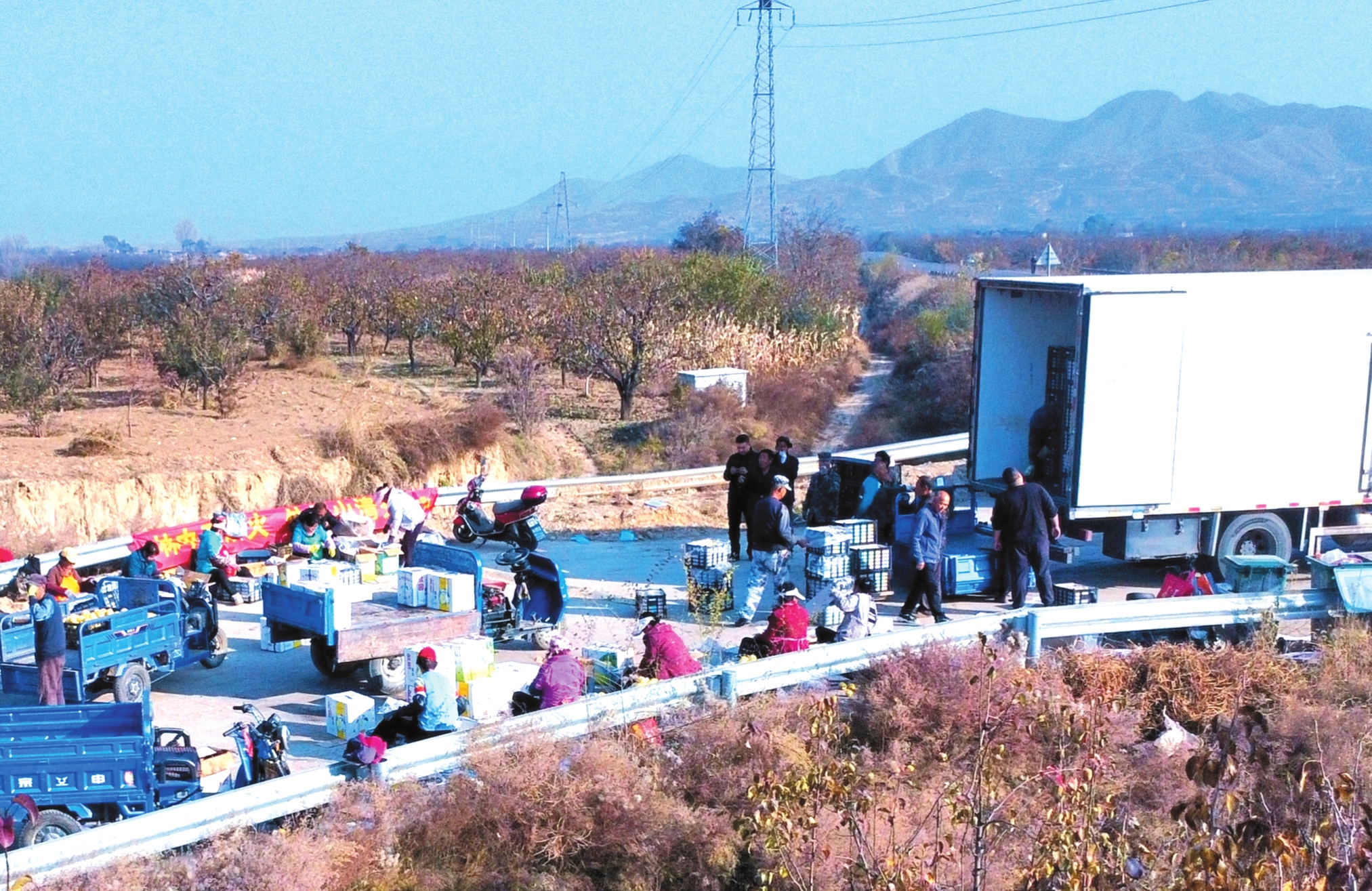 11月13日,原平市同川鎮(zhèn)上莊村果農(nóng)正將優(yōu)質(zhì)酥梨裝車(chē)發(fā)往河北等地。近年來(lái),該市走品牌農(nóng)業(yè)和綠色種植路子,以農(nóng)業(yè)高質(zhì)量發(fā)展帶動(dòng)農(nóng)民增收。(褚震攝)