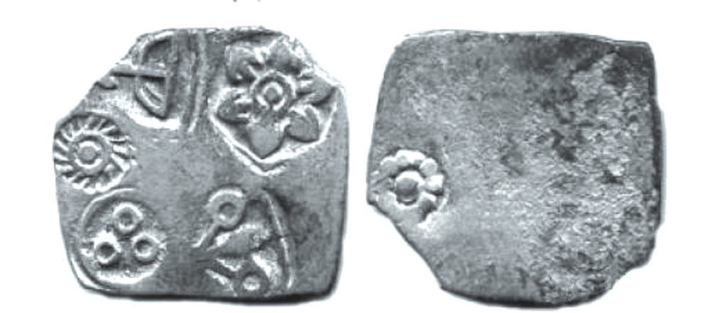 古印度摩揭陀國孔雀王朝時期的卡夏帕那銀幣,似乎可以為亞里士多德的說法提供佐證。卡夏帕那銀幣的具體起源時間不詳,其名源自重量單位“卡夏”,形制為切割成型的銀片或銀塊,正面加蓋戳記作為價值標(biāo)識,戳記數(shù)量通常為一個至六個不等。早期的卡夏帕那銀幣可能由民間或地方勢力發(fā)行,其價值除了依托銀材本身的重量與成色,很大程度上取決于加蓋戳記的發(fā)行人或認(rèn)證人的信譽背書。