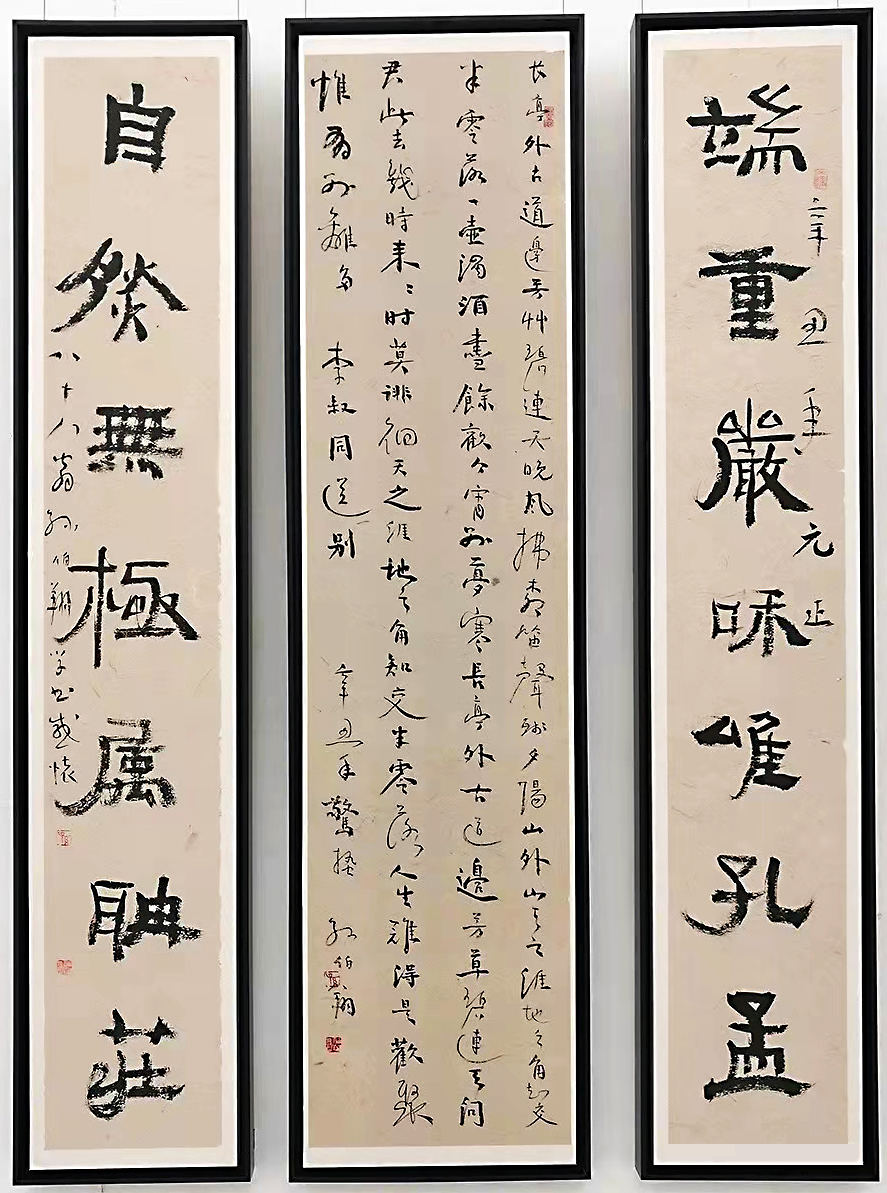 開展儀式結(jié)束后,弟子們興致未減,激情澎湃,帶著感情,在餐桌上進(jìn)行了別開生面的研討。他們從師父的成長(zhǎng)經(jīng)歷,從孫老書法藝術(shù)的特色,從人格內(nèi)涵與書法藝術(shù)的關(guān)聯(lián),從孫老過去到現(xiàn)在的每一次展覽的變化……大家各抒己見,交流碰撞,論述精彩,見解深刻,展現(xiàn)了高超的專業(yè)水準(zhǔn),仿佛一場(chǎng)餐桌上的研討會(huì)。 (張美明)