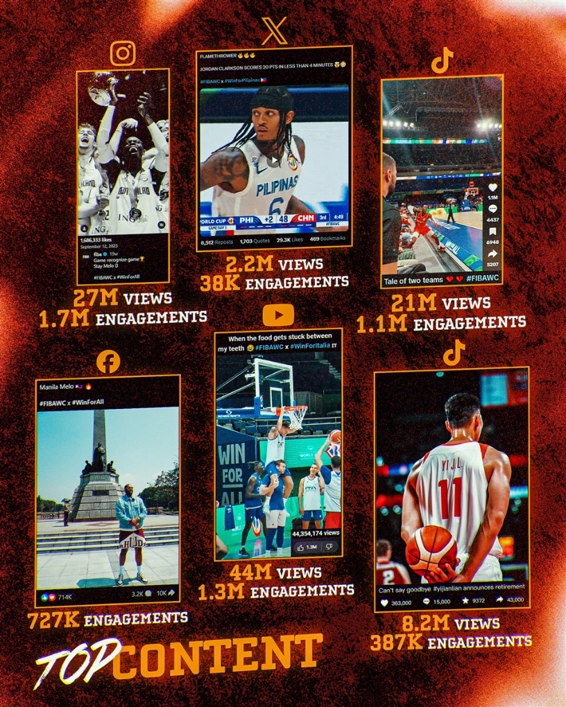 國際籃聯(lián)2023年社交媒體數(shù)據(jù)報告。圖片來源自國際籃聯(lián)官方網(wǎng)站