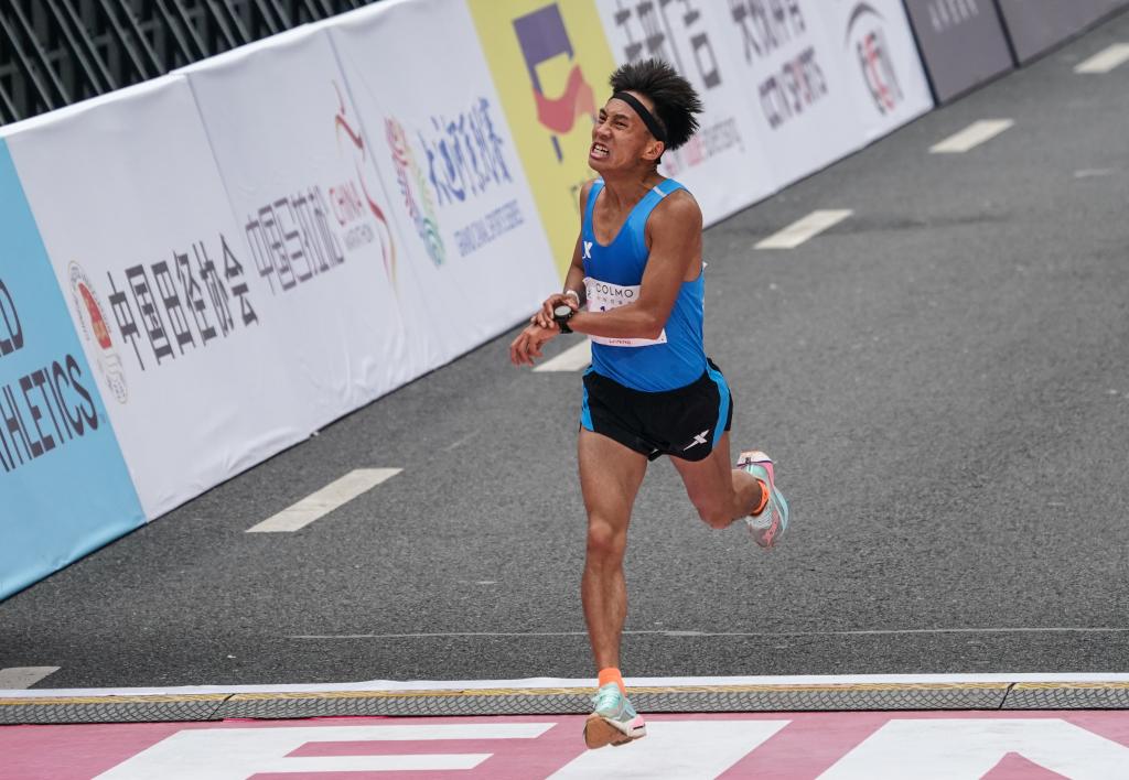2023年3月19日,何杰在無錫馬拉松比賽中沖過終點。新華社記者 楊磊 攝