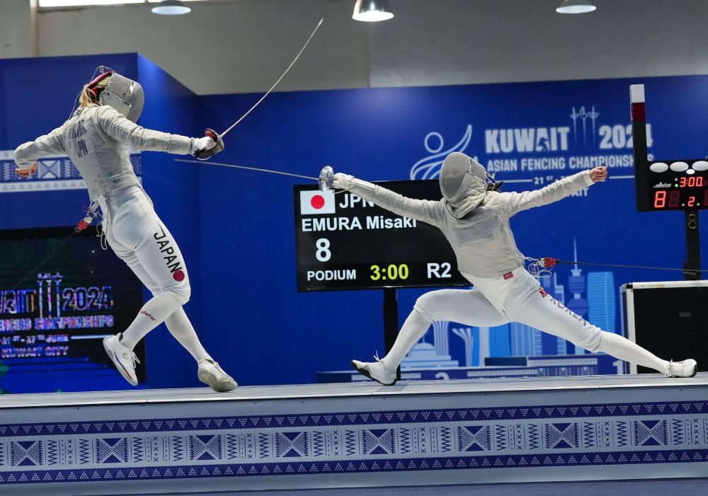 江村美咲(左)與尹智秀在女佩個(gè)人決賽中