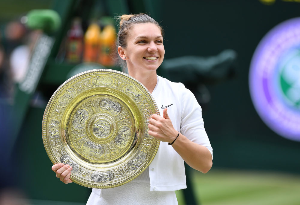2019年7月13日,哈勒普在溫網(wǎng)奪冠后手捧冠軍獎盤。新華社記者 逯陽 攝