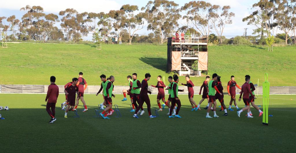 當(dāng)天的訓(xùn)練場距離中國隊下榻的酒店有10公里,訓(xùn)練從下午六點開始,持續(xù)了大約一個半小時。與前一天下午抵達(dá)后進(jìn)行的恢復(fù)性訓(xùn)練不同,主教練伊萬科維奇帶領(lǐng)球隊按照比賽要求,進(jìn)行了排兵布陣和戰(zhàn)術(shù)演練。