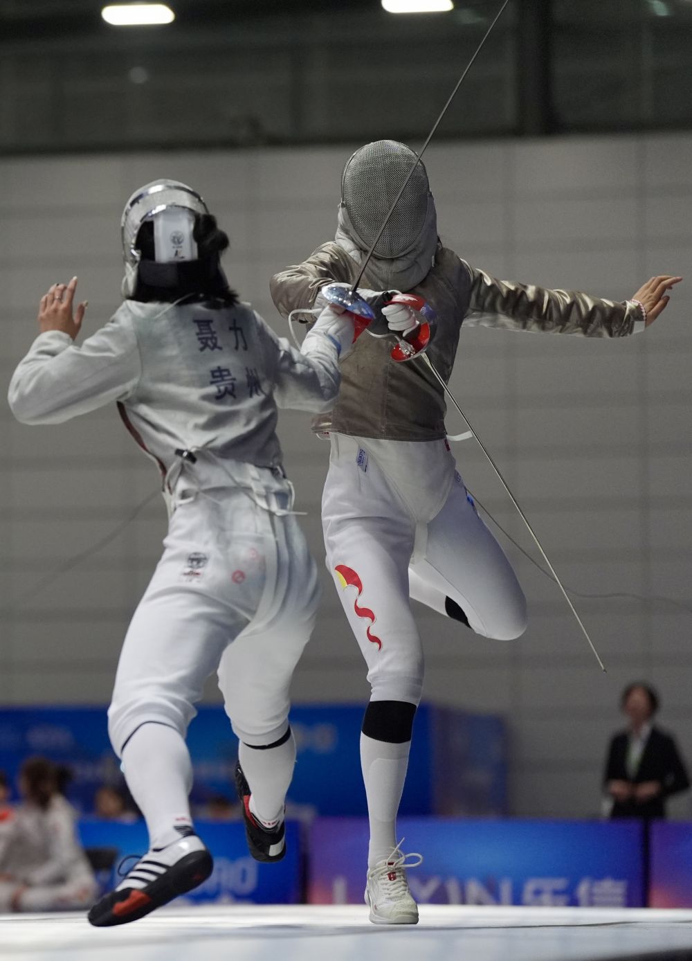 楊恒郁(右)在女佩團體決賽中