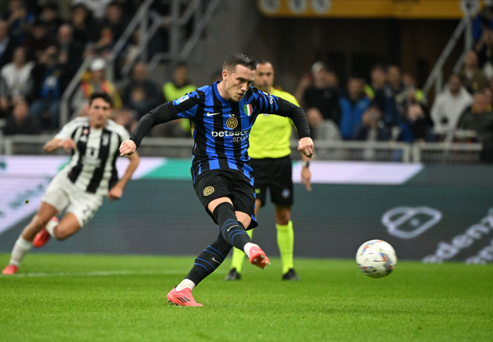 10月27日,國際米蘭隊球員澤林斯基在比賽中主罰點球得分。新華社發(fā)(阿爾貝托·林格利亞 攝)
