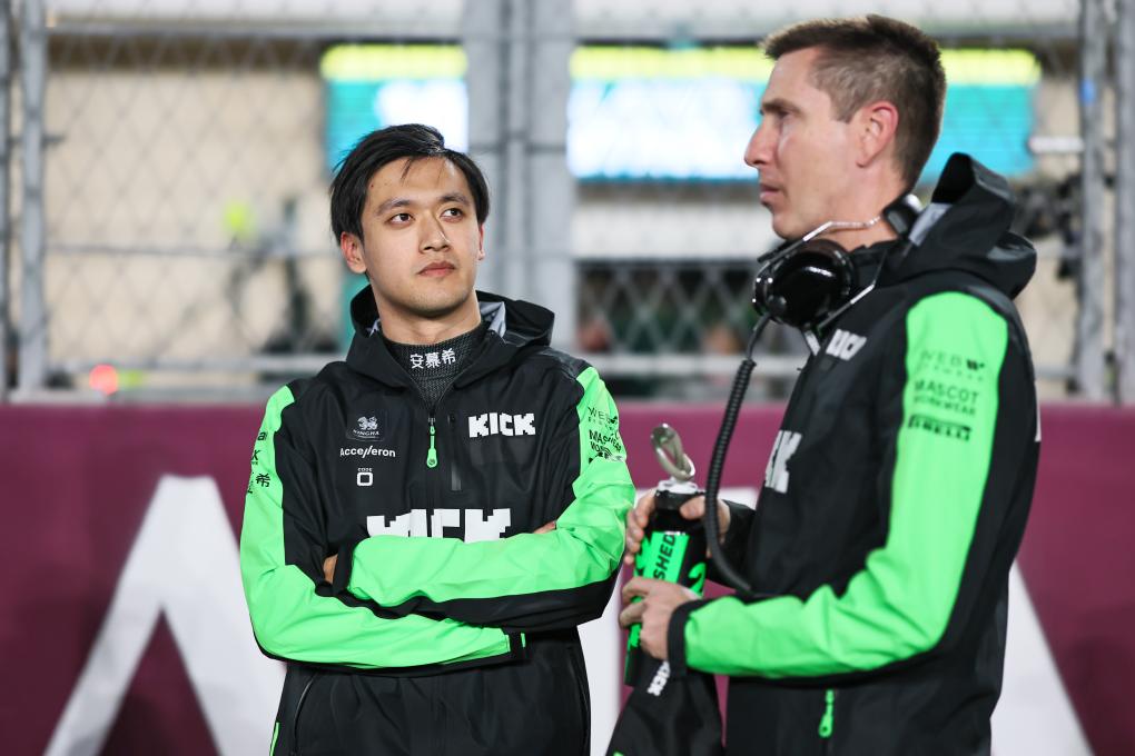 12月1日,索伯車隊(duì)中國(guó)車手周冠宇(左)在比賽前。新華社發(fā)(錢俊攝)