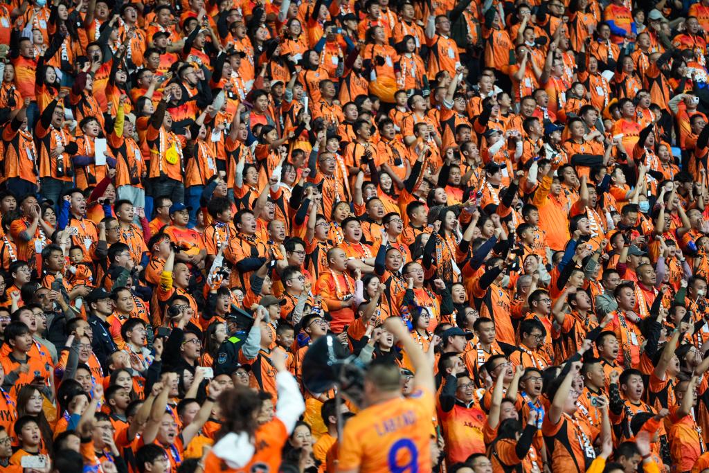 在2月22日進(jìn)行的2025賽季中超聯(lián)賽首輪云南玉昆隊(duì)對(duì)陣北京國(guó)安隊(duì)的比賽中,云南玉昆隊(duì)球迷在現(xiàn)場(chǎng)加油助威。新華社記者陳欣波攝