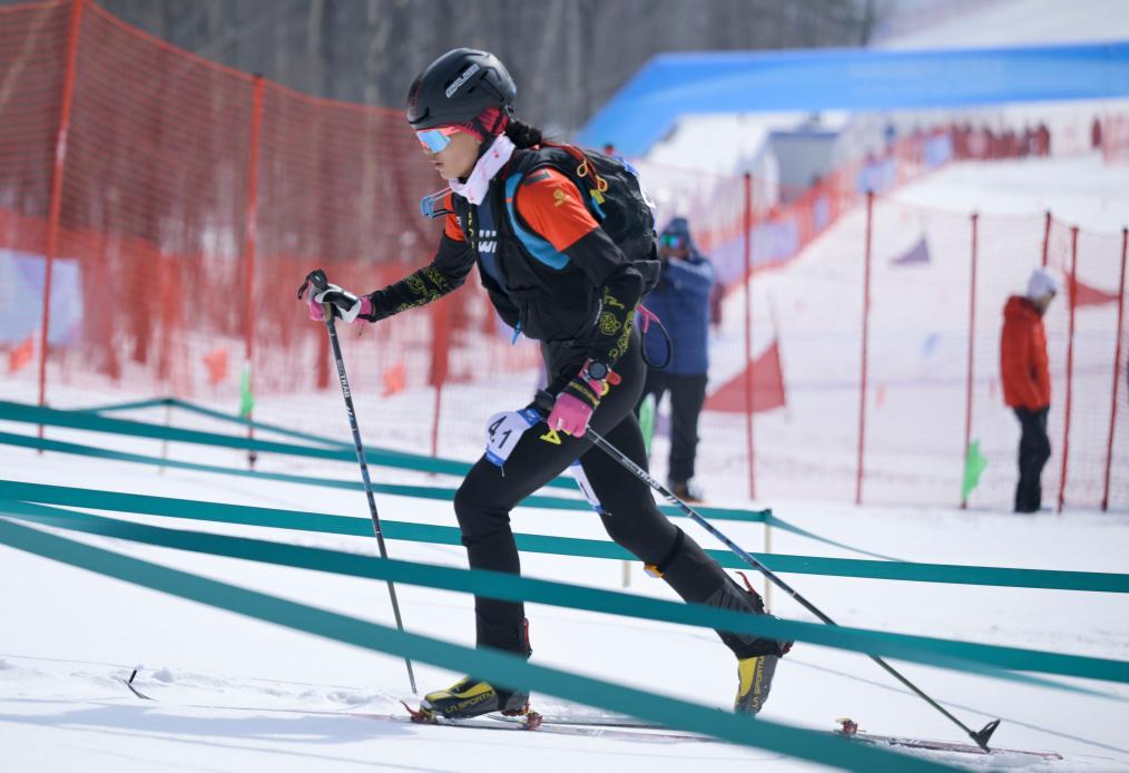 圖為索朗曲珍在哈爾濱亞冬會(huì)滑雪登山比賽中。新華社記者 胡虎虎 攝