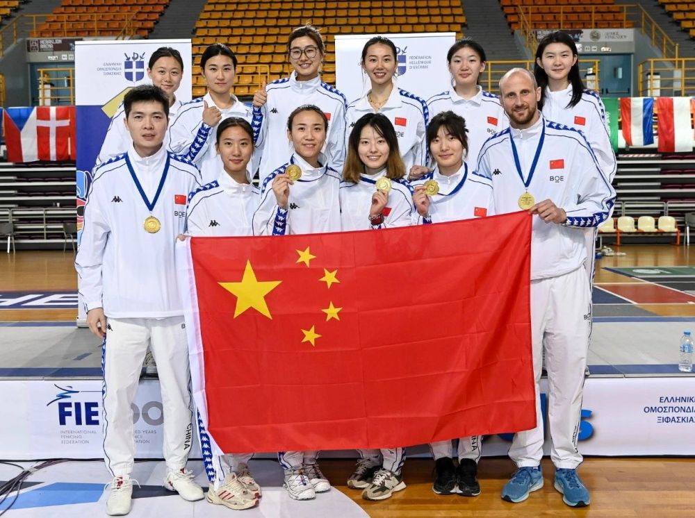 新華社雅典3月9日電 在當?shù)貢r間9日進行的2024/25賽季國際劍聯(lián)女子佩劍世界杯希臘伊拉克利翁站比賽中,中國隊一路過關(guān)斬將摘得團體金牌。這是中國女佩自2011年倫敦站后,時隔14年再奪世界杯團體冠軍。