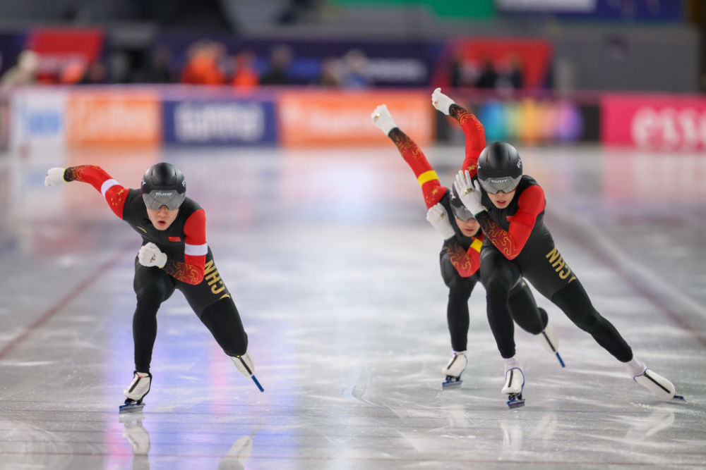 新華社奧斯陸3月13日電(記者張玉亮)2024-2025賽季速度滑冰世界錦標(biāo)賽13日在挪威哈馬爾的維京船體育館拉開戰(zhàn)幕。在首日進(jìn)行的比賽中,由薛智文、廉子文和寧忠?guī)r組成的中國隊(duì)在短距離男子團(tuán)體追逐賽中打破場地紀(jì)錄,以1分18秒13的成績奪得金牌,荷蘭隊(duì)和美國隊(duì)分獲該項(xiàng)目的亞軍和季軍。
