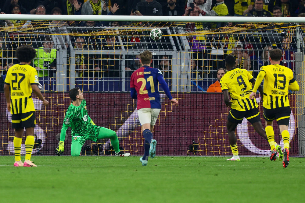 由于巴薩門將出擊犯規(guī),多特在第11分鐘獲得點球,吉拉西主罰命中。此后,主隊攻勢不斷,直到第49分鐘終于由吉拉西頭球破門,進一步擴大領(lǐng)先優(yōu)勢。巴薩在第54分鐘依靠對手的“烏龍球”扳回一城。雖然吉拉西在第76分鐘打入個人本場第三球,但仍無法改變多特被淘汰的結(jié)果。