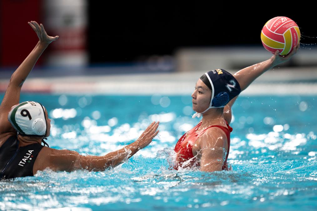 中國(guó)隊(duì)在交叉賽中遭遇世界排名第七的意大利隊(duì),雙方一開場(chǎng)就開始在水中“肉搏”,比拼防守。第一節(jié)中國(guó)隊(duì)以0:2落后。次節(jié)中國(guó)隊(duì)逐漸找到進(jìn)攻節(jié)奏,由王詩(shī)蘊(yùn)率先破門,此后雙方你來(lái)我往,交替得分。張育綿、周尚、張玘鑠的進(jìn)球幫助中國(guó)隊(duì)緊咬比分,半場(chǎng)結(jié)束中國(guó)隊(duì)5:6落后。