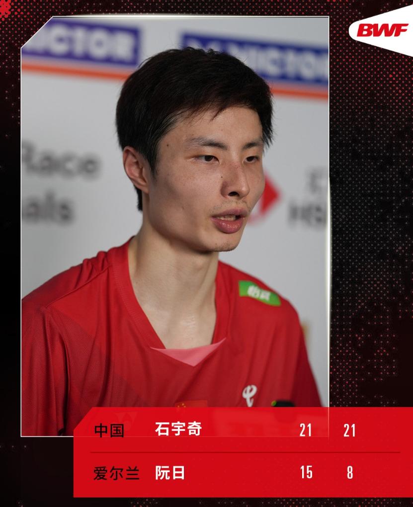 男單方面,國(guó)羽三人全部取勝。3號(hào)種子石宇奇以21:15、21:8戰(zhàn)勝愛(ài)爾蘭選手阮日,李詩(shī)灃以21:17、21:9擊敗中國(guó)香港隊(duì)的伍家朗。四分之一決賽兩人將捉對(duì)較量。