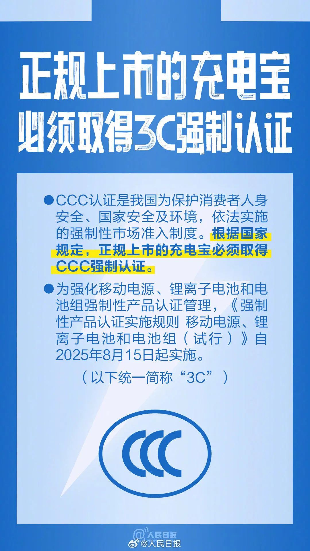 8月15日起新規(guī)施行,完善細(xì)化充電寶3C認(rèn)證實(shí)施要求。注意:未被召回的充電寶能夠使用,但乘坐公共交通時(shí)要遵守相應(yīng)規(guī)定。如何認(rèn)準(zhǔn)3C標(biāo)志?日常使用充電寶,有哪些安全建議?