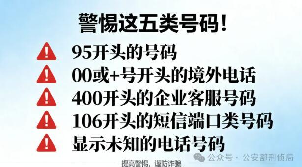 95開頭的號(hào)碼,一般為金融、航空、通信等企業(yè)的客服電話,如果接到95開頭并且超過8位數(shù)的電話,可能為境外改號(hào)的詐騙電話。