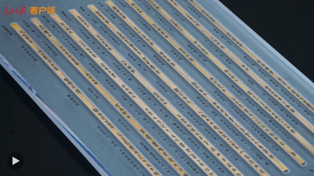 湖北荊州文物保護(hù)中心工作人員對(duì)修復(fù)完成的簡牘進(jìn)行記錄。
