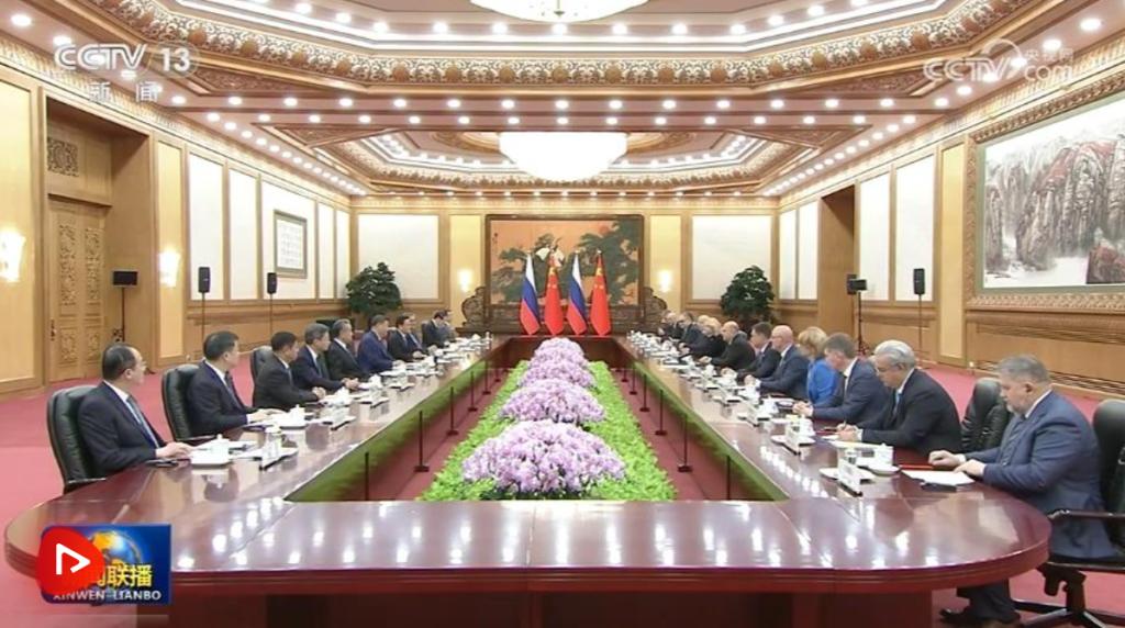 11月4日上午,國家主席習(xí)近平在北京人民大會堂會見俄羅斯總理米舒斯京。