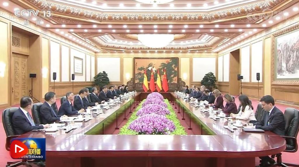 習(xí)近平強(qiáng)調(diào),中方珍視同西班牙的傳統(tǒng)友好,重視西班牙在國(guó)際和地區(qū)事務(wù)中的獨(dú)特作用,愿同西班牙一道,攜手打造更有戰(zhàn)略定力、更富發(fā)展活力、更具國(guó)際影響力的全面戰(zhàn)略伙伴關(guān)系。雙方要進(jìn)一步堅(jiān)定相互支持,保持高層交往勢(shì)頭,加強(qiáng)戰(zhàn)略引領(lǐng),確保兩國(guó)關(guān)系始終走在正確道路上。要進(jìn)一步推進(jìn)務(wù)實(shí)合作,中方愿進(jìn)口更多西班牙優(yōu)質(zhì)產(chǎn)品,挖掘新能源、數(shù)字經(jīng)濟(jì)、人工智能等新興領(lǐng)域合作潛力,擴(kuò)大相互投資,打造更多標(biāo)志性項(xiàng)目。雙方還可以優(yōu)勢(shì)互補(bǔ),共同開(kāi)拓拉美等第三方市場(chǎng)。要進(jìn)一步促進(jìn)民心相通,加強(qiáng)文化教育領(lǐng)域交流,相互支持辦好各自在對(duì)方國(guó)家的文化和語(yǔ)言機(jī)構(gòu)。中方將繼續(xù)延長(zhǎng)實(shí)施對(duì)西免簽政策,便利人員往來(lái),讓兩國(guó)民眾越走越親。