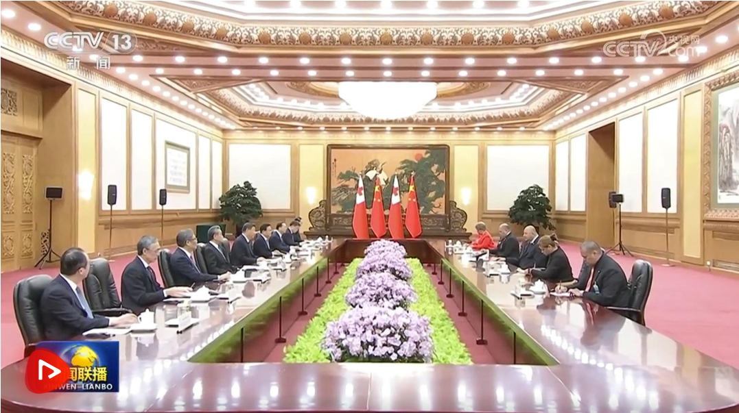 11月25日上午,國(guó)家主席習(xí)近平在北京人民大會(huì)堂會(huì)見(jiàn)來(lái)華進(jìn)行國(guó)事訪問(wèn)的湯加國(guó)王圖普六世。