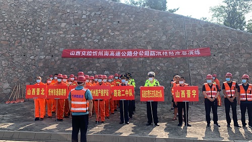 本網(wǎng)訊 為進(jìn)一步提高防汛實戰(zhàn)能力,保障道路安全暢通,近日,公司安全應(yīng)急部、路產(chǎn)維護(hù)部、路政二中隊、忻州路產(chǎn)維護(hù)站聯(lián)合高速交警五支隊四大隊、山西晉北、山西晉宇等相關(guān)單位,開展2021年忻州南公司防汛搶險應(yīng)急演練,公司黨委副書記、副董事長、總經(jīng)理張彥斌參加。