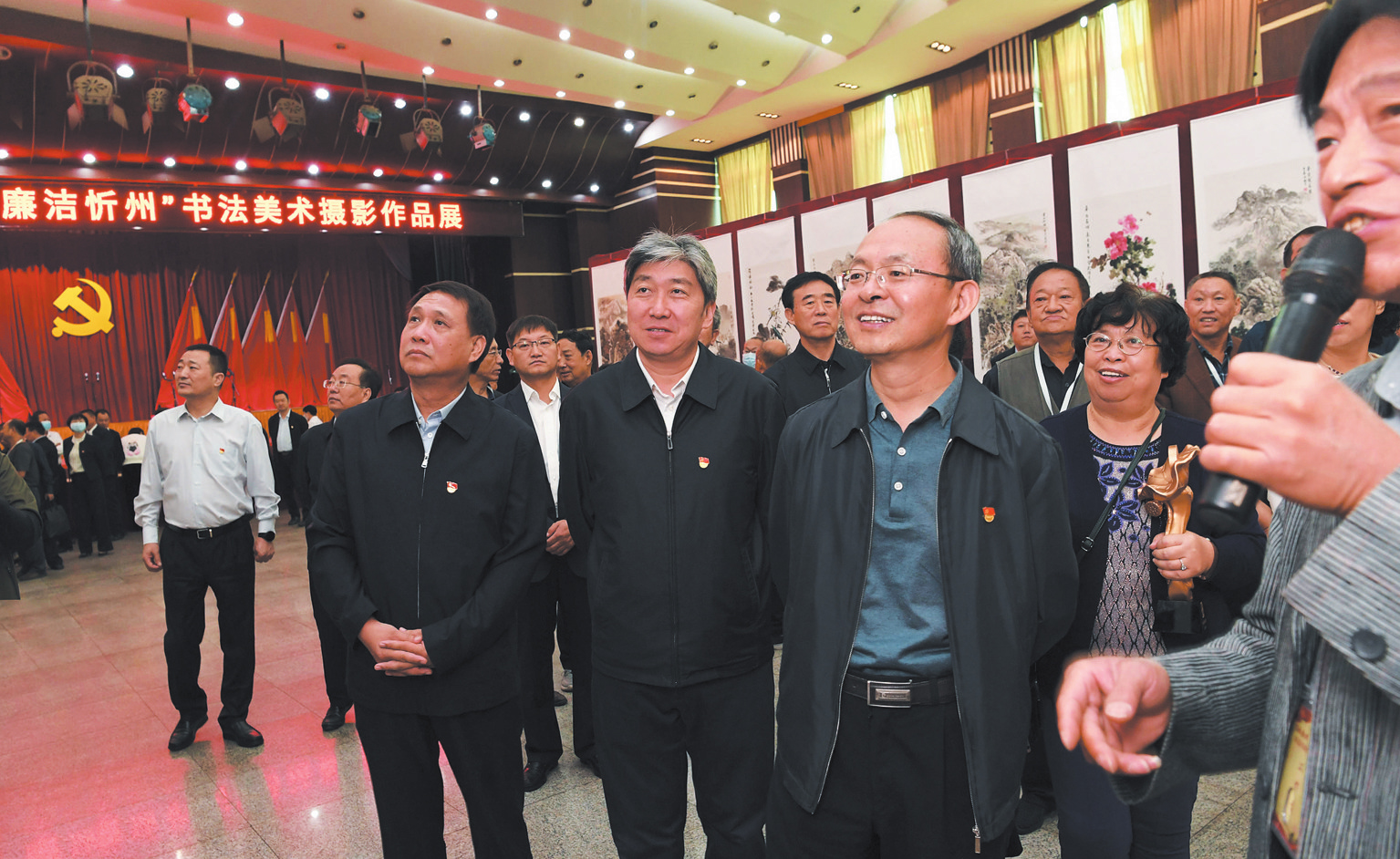 開展儀式上,市領(lǐng)導(dǎo)為迎國(guó)慶“清風(fēng)雅頌·廉潔忻州”書法美術(shù)攝影作品展一等獎(jiǎng)、二等獎(jiǎng)、三等獎(jiǎng)的獲獎(jiǎng)作者頒發(fā)了獎(jiǎng)杯和證書。
