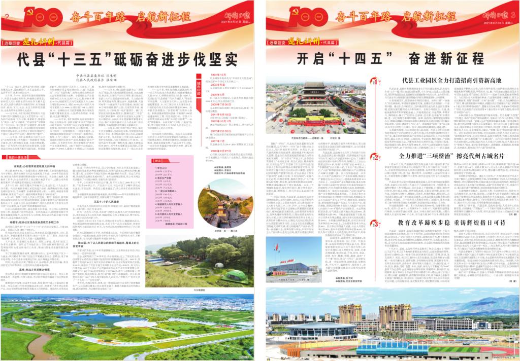 “十三五”的五年,是代縣與時俱進(jìn)、創(chuàng)新發(fā)展的五年,是砥礪前行、務(wù)實奮進(jìn)的五年,是苦干實干、成果豐碩的五年。