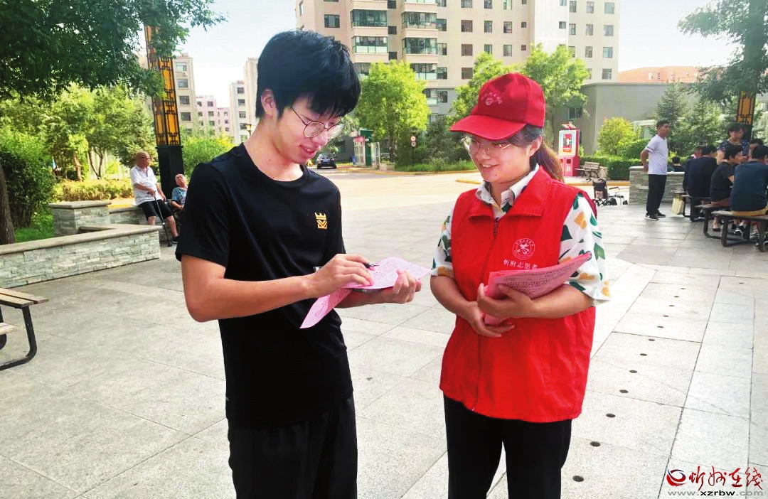 志愿者在小區(qū)進行問卷調查。劉慧 攝