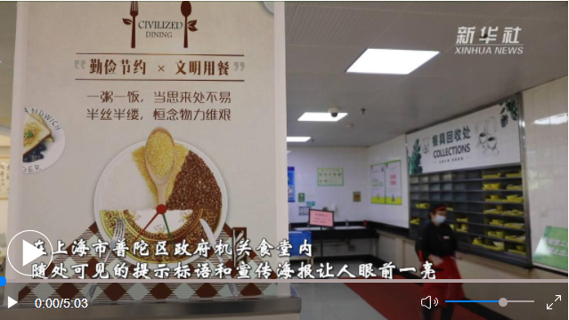 “點菜點少、不夠再添”“光盤行動、從我做起”“厲行節(jié)約、反對浪費”……在上海市普陀區(qū)政府機關(guān)食堂內(nèi),隨處可見的提示標語和宣傳海報讓人眼前一亮。