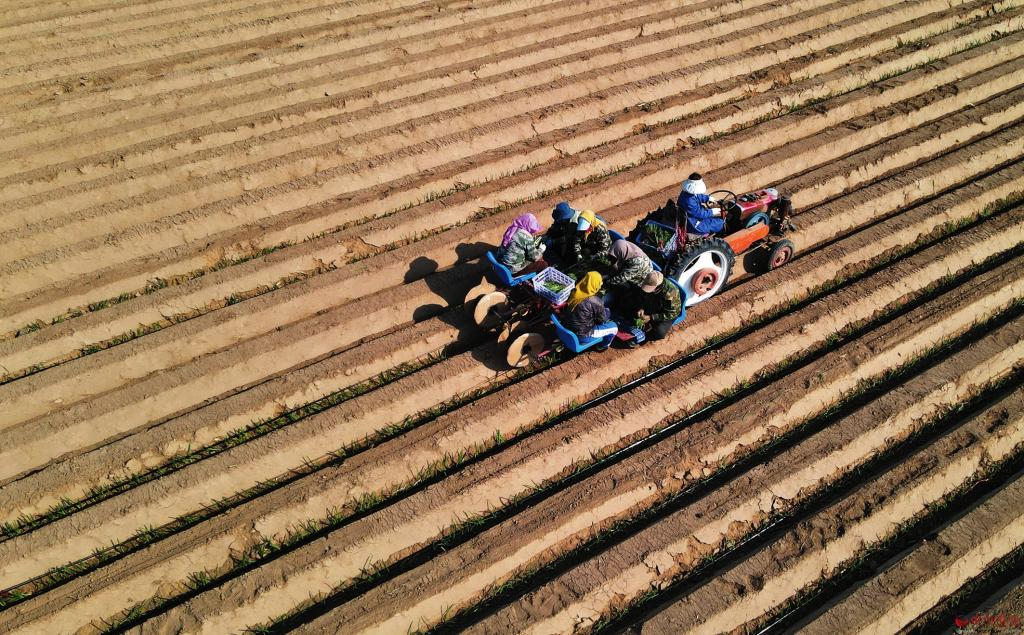 3月30日,在忻府區(qū)解原村的農田里,村民利用晴好天氣搶種大蔥,機械人工齊上陣,田間地頭一片忙碌景象。(