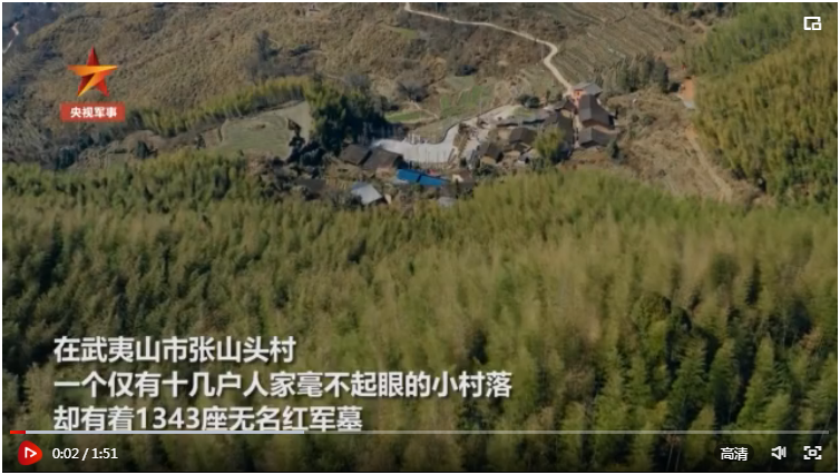 福建張山頭村竹林中,有1343座無(wú)名紅軍墓,每座墓僅一根紅飄帶、一個(gè)編號(hào)做標(biāo)記。革命戰(zhàn)爭(zhēng)年代,這里曾是閩北蘇區(qū)紅色首府所在地的中心地帶,不少傷病員在村里的紅軍中醫(yī)院療養(yǎng)。敵人“圍剿”,藥品不足,斷米斷菜,很多將士犧牲了,村民就把他們?cè)嵩卺t(yī)院后方,3塊青磚做墓門。為保護(hù)家人,這些紅軍沒有留下名字……(胡渝 任超 張馨尹)