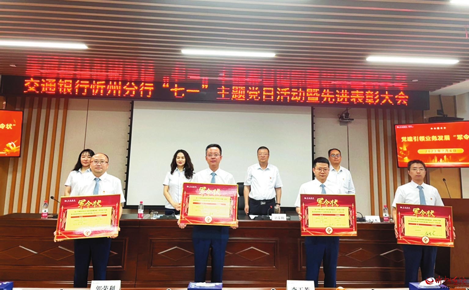 為慶祝建黨102周年,深入推進學習貫徹習近平新時代中國特色社會主義思想,進一步弘揚革命傳統(tǒng),賡續(xù)紅色血脈,7月6日,交通銀行忻州分行舉辦主題黨日活動,表彰先進凝聚力量。全行黨員及入黨積極分子參加。