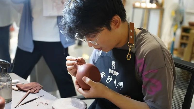 在砂器(紫砂)文化示范區(qū)的山西晉明堂文化科技有限公司(以下簡(jiǎn)稱晉明堂),一位年輕人正熟練地運(yùn)用各種工具給手里的紫砂壺進(jìn)行壺嘴部分的制作。他叫穆清,今年剛20歲出頭的他,耳濡目染父親對(duì)紫砂文化的熱愛(ài),也對(duì)這一行業(yè)產(chǎn)生了濃厚的興趣,決心將平定紫砂文化傳承發(fā)揚(yáng)下去。