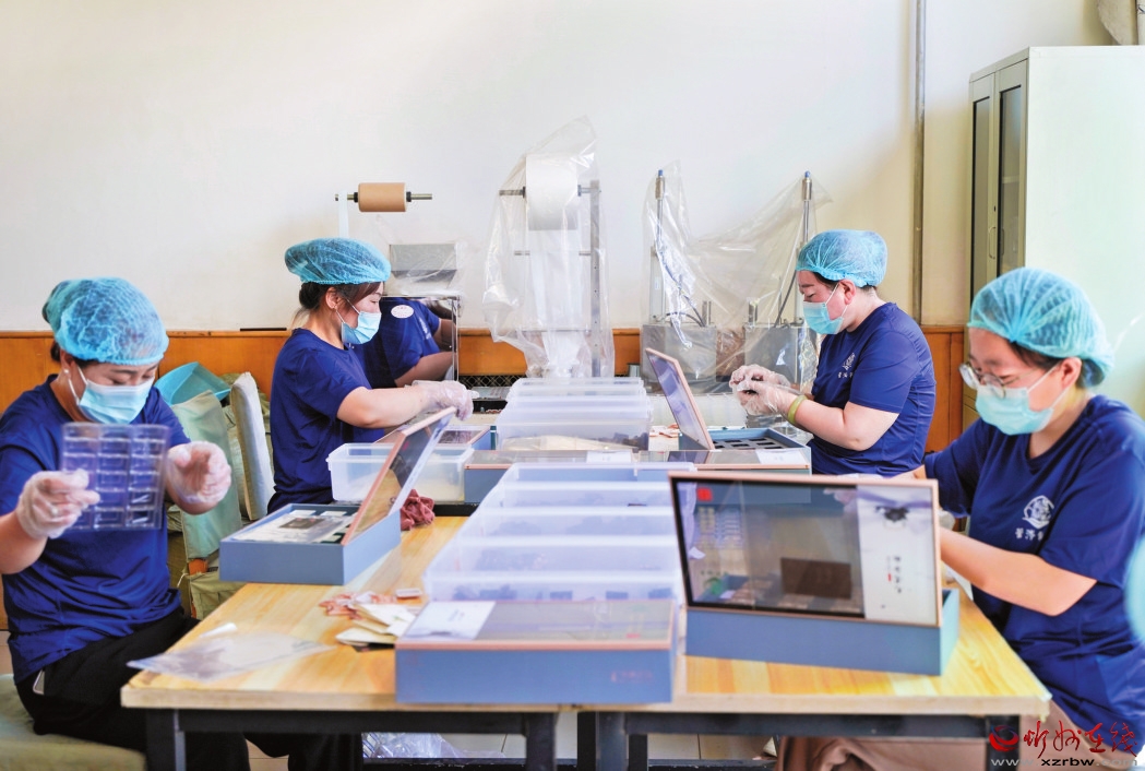 走進(jìn)山西一品緣茶葉有限責(zé)任公司制茶車間,一盤盤正在晾曬的毛建草,散發(fā)出陣陣香氣。它們在這里,經(jīng)采用傳統(tǒng)手工工藝與現(xiàn)代工藝技術(shù),通過清洗、蒸煮、揉捻、發(fā)酵、炒制、烘干、篩分、色選補火、壓制、包裝等工序,搖身一變成為品相精美、口感鮮醇的毛建茶。