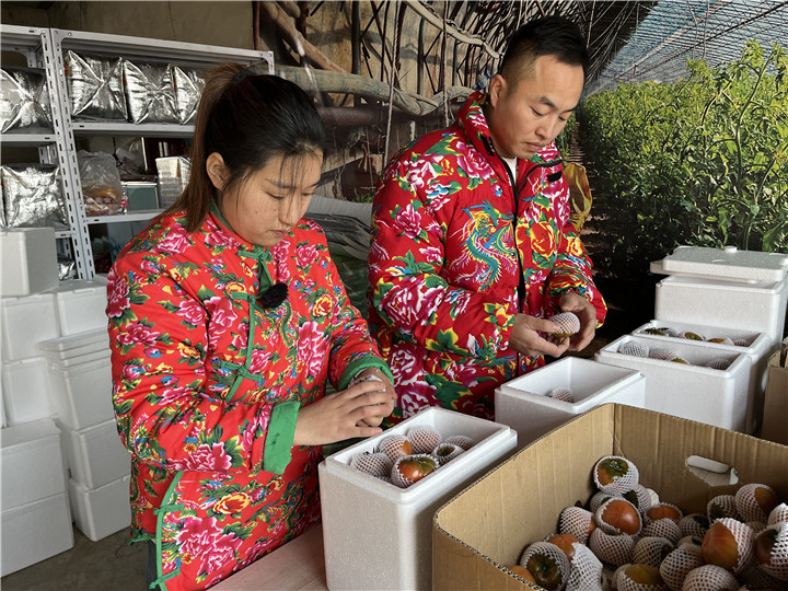 現(xiàn)在正值盤錦堿地柿子集中上市時期,王海濤和張爽每天都忙得團團轉?!敖衲暧唵瘟勘热ツ昝黠@增加不少,上升到每天200單左右?!睆埶f。