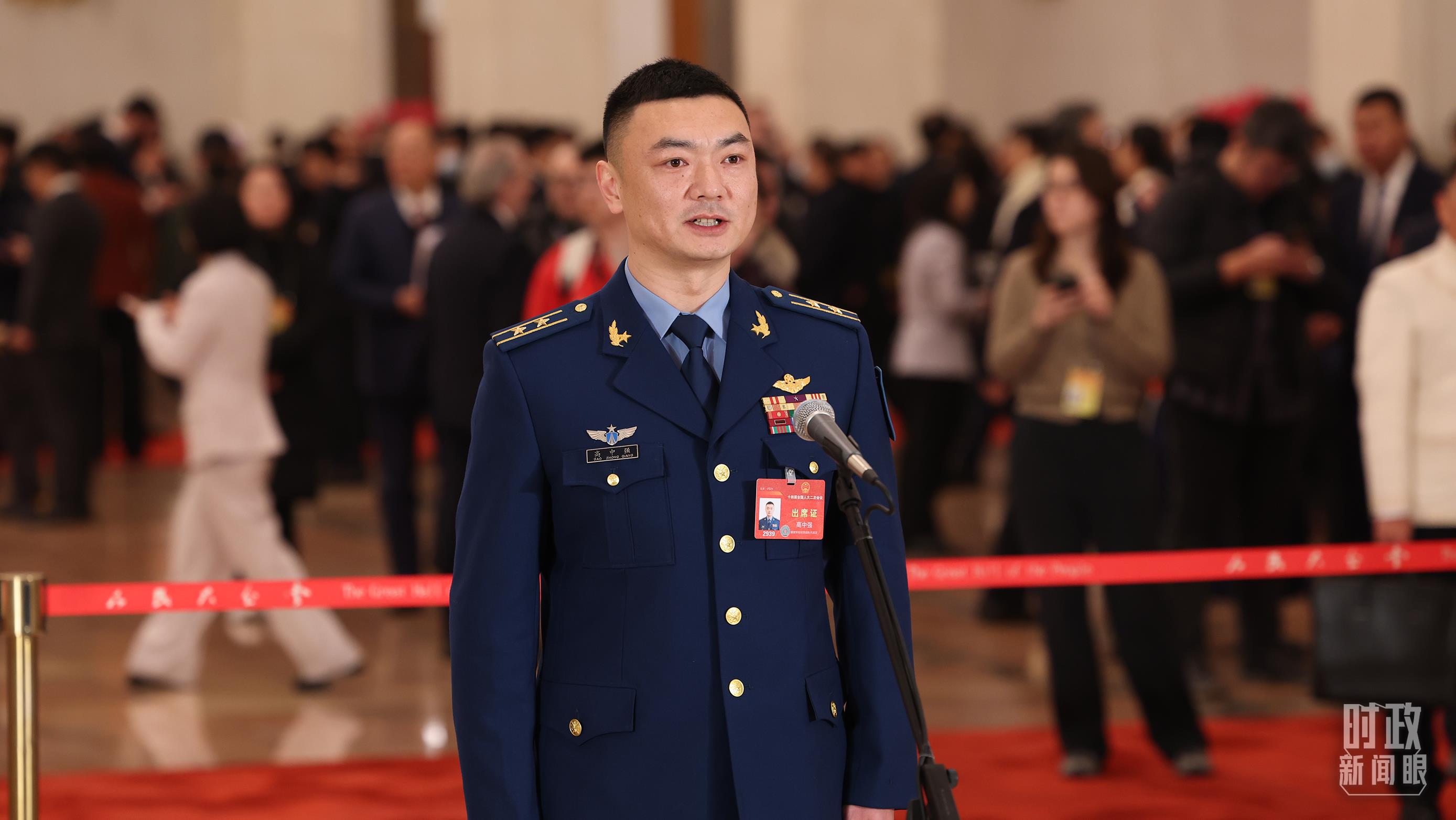 △2024年3月5日,十四屆全國(guó)人大二次會(huì)議首場(chǎng)“代表通道”集中采訪活動(dòng)中,全國(guó)人大代表、空軍航空兵某旅副參謀長(zhǎng)高中強(qiáng)正在答記者問(wèn)。(圖/視覺(jué)中國(guó))