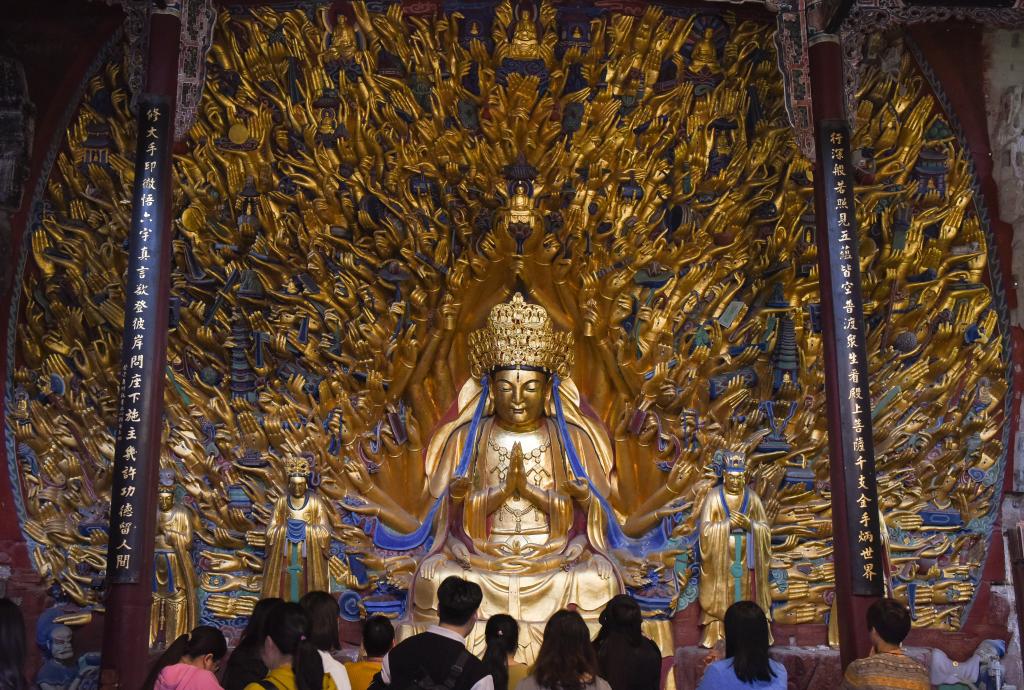 1952年,大足石刻文物保護(hù)機(jī)構(gòu)成立,開(kāi)始系統(tǒng)科學(xué)保護(hù)大足石刻。當(dāng)年,北山石刻保護(hù)長(zhǎng)廊啟動(dòng)建設(shè),北山石刻上方加蓋了擋雨的頂棚;1961年,北山、寶頂山摩崖造像成為第一批全國(guó)重點(diǎn)文物保護(hù)單位;1999年,大足石刻被列入《世界遺產(chǎn)名錄》;2015年,全國(guó)石質(zhì)文物保護(hù)一號(hào)工程——大足石刻千手觀音造像搶救性保護(hù)工程竣工;2019年,《大足石刻全集》出版,填補(bǔ)了國(guó)內(nèi)石窟寺編寫(xiě)出版大型考古報(bào)告的空白……