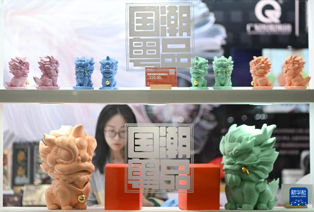 5月23日,參展商在第二十屆文博會上向參觀者介紹文創(chuàng)產(chǎn)品。(新華社記者 毛思倩 攝)