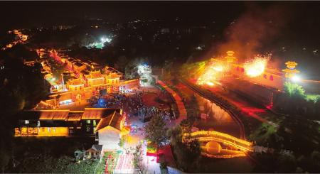 夜幕降臨,火花四濺,光影交錯,在裸眼3D技術打造的場景藝術下,一場《如愿大陽》實景戲劇悄然登場,婉轉(zhuǎn)的音樂和動人的故事仿若解讀著千年大陽鐵文化,讓游人懷揣著對歷史文化的探尋,沉浸式走進這千年古鎮(zhèn),一睹往日恢宏……