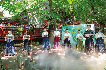 在太山景區(qū)售票廳里,背誦古詩詞免門票的活動吸引了不少18周歲以下的學生參加,大家通過轉(zhuǎn)盤選定需要背誦的古詩詞,完成背誦即可獲得門票一張。“和同學們正好一塊兒來了,通過參加這個活動,弘揚我們的傳統(tǒng)文化,是非常有意義的?!苯衲晔钇冢骄皡^(qū)面向廣大學生推出皮影戲、手工DIY印章、拓印等非遺體驗活動。同時,景區(qū)還準備了2000多套漢服,免費為游客提供。