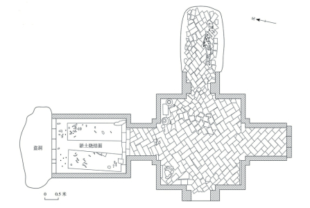 而M27獨(dú)居?xùn)|區(qū),間距達(dá)100余米,與前兩墓形成鮮明反差,墓磚無(wú)任何涂紅,隨葬品僅見(jiàn)素面灰陶罐、陶碗,東漢常見(jiàn)釉陶禮器(耳杯、案、盤等)完全消失,墓道呈“口小底大”特殊結(jié)構(gòu),墓室西北角設(shè)灶,突破同期墓葬的空間布局傳統(tǒng)。