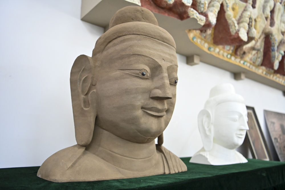 這是4月16日在云岡研究院數(shù)字化保護(hù)中心展廳拍攝的3D打印佛像模型。云岡研究院還通過高校合作、對外交流等方式