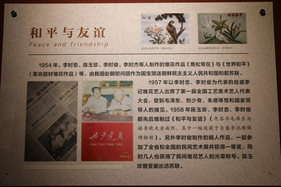 然而,歷史的波瀾并未停止。中華人民共和國(guó)成立后,堆花藝術(shù)經(jīng)歷了從繁榮到衰落,再到復(fù)興的曲折歷程。在黨和政府的關(guān)懷下,老一輩堆花藝人積極響應(yīng)號(hào)召,成立堆花小組,將堆花藝術(shù)服務(wù)于國(guó)家建設(shè)和人民生活??姑涝陂g,堆花作品作為國(guó)寶贈(zèng)予朝鮮,見證了中朝兩國(guó)人民的深厚友誼。