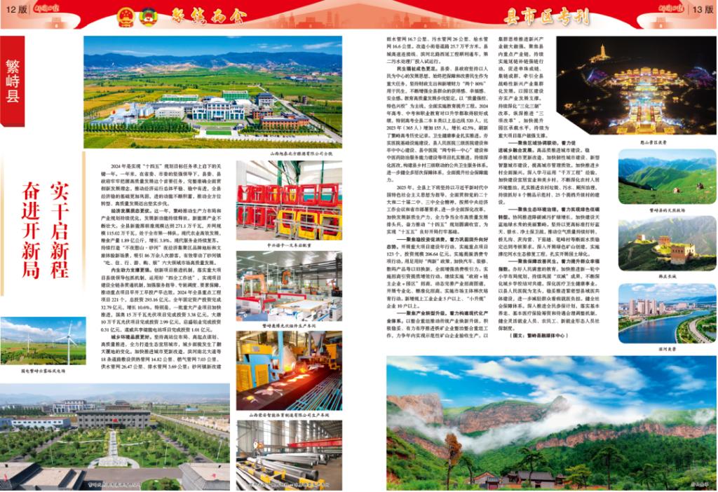 經(jīng)濟發(fā)展質(zhì)態(tài)更優(yōu)。這一年,繁峙推動生產(chǎn)力布局和產(chǎn)業(yè)規(guī)劃持續(xù)優(yōu)化,發(fā)展新動能持續(xù)釋放。新能源產(chǎn)業(yè)不斷壯大。全縣新能源核準(zhǔn)規(guī)模達(dá)到271.1萬千瓦,并網(wǎng)規(guī)模115.02萬千瓦,處于全市第一梯隊?,F(xiàn)代農(nóng)業(yè)高效發(fā)展,糧食產(chǎn)量1.89億公斤,增長3.8%?,F(xiàn)代服務(wù)業(yè)持續(xù)復(fù)蘇。持續(xù)打造“不夜憨山·砂河”夜經(jīng)濟集聚區(qū)品牌地標(biāo)和文旅體驗新場景,吸引86萬余人次游客,有效帶動了砂河鎮(zhèn)“吃、住、行、游、購、娛”六大領(lǐng)域市場高質(zhì)量發(fā)展。