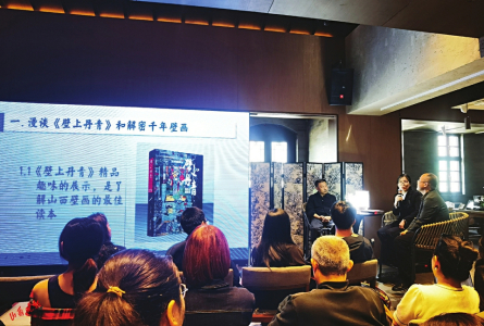 這場(chǎng)講座備受文博迷們關(guān)注,預(yù)告一經(jīng)發(fā)布,便達(dá)到報(bào)名滿額的狀態(tài)。當(dāng)日,現(xiàn)場(chǎng)更是座無(wú)虛席,不乏默默站著聆聽(tīng)的觀眾。專家們帶領(lǐng)大家穿越千年時(shí)光,從漢魏墓室壁畫(huà)開(kāi)始,將壁畫(huà)的線條、配色、技術(shù)、布局等一一揭曉。史宏蕾教授從平陸縣棗園漢墓壁畫(huà)、大同沙嶺墓、太原婁睿墓講起,壁畫(huà)上的鑿井青龍、白虎和玄武形象、還原農(nóng)業(yè)生產(chǎn)景象的牛耕壁畫(huà)、一對(duì)墓主人夫婦的畫(huà)作以及宰羊圖……這些畫(huà)作線條優(yōu)美、故事豐富、將當(dāng)時(shí)的生活狀態(tài)表現(xiàn)得活靈活現(xiàn)。史宏蕾教授表示,古代畫(huà)匠可以被稱為“巨匠”“藝術(shù)家”,他們的審美、原創(chuàng)力都堪稱為領(lǐng)先,很多時(shí)候她更愿意稱這些畫(huà)匠為“丹青專職畫(huà)家”。