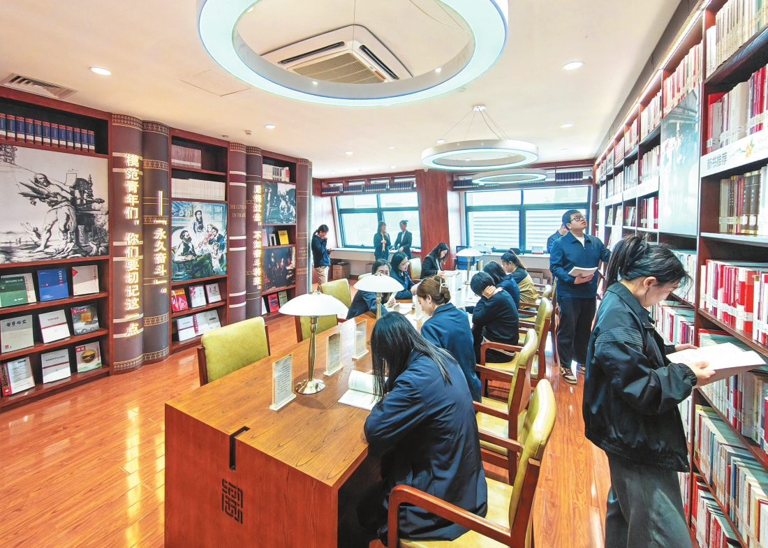 陽(yáng)泉市城區(qū)晉東二社區(qū)攜手市第十九中學(xué)校30余名師生,走進(jìn)陽(yáng)泉記憶·1947文化園——城市書房舉辦“書香躍動(dòng)智閱晉東”主題研學(xué)實(shí)踐活動(dòng)。張澤慧攝