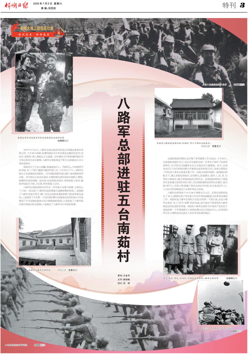 1937年9月6日,八路軍總部由陜西涇陽縣云陽鎮(zhèn)東渡黃河來到山西。9月22日凌晨,彭德懷副總司令率總部由定襄河邊出發(fā),經(jīng)東冶、望景崗、黃土坡抵達五臺縣城。經(jīng)朱德總司令和彭德懷副總司令等總部首長親自勘察,八路軍總部駐地定于距五臺縣城東北15公里的南茹村。